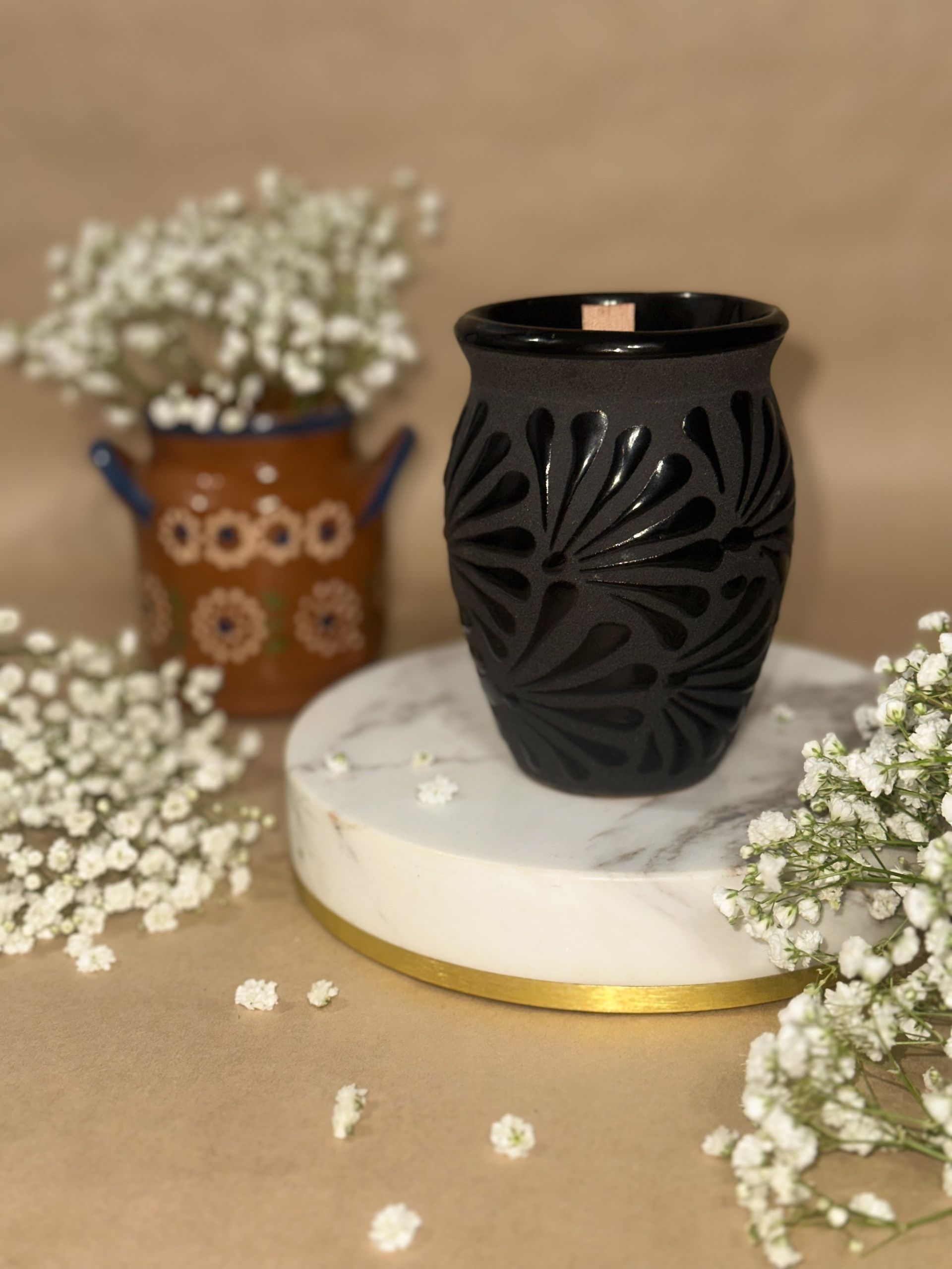Indulge your senses with the rich aroma of Hermoso Encanto in our soy candle, hand-poured in San Antonio, Texas. Housed in a beautiful white and orange jarrito handcrafted by skilled Mexican artisans, this candle combines authentic craftsmanship with the comforting scent of Hermoso Encanto. Perfect for creating a warm and inviting ambiance in any space.