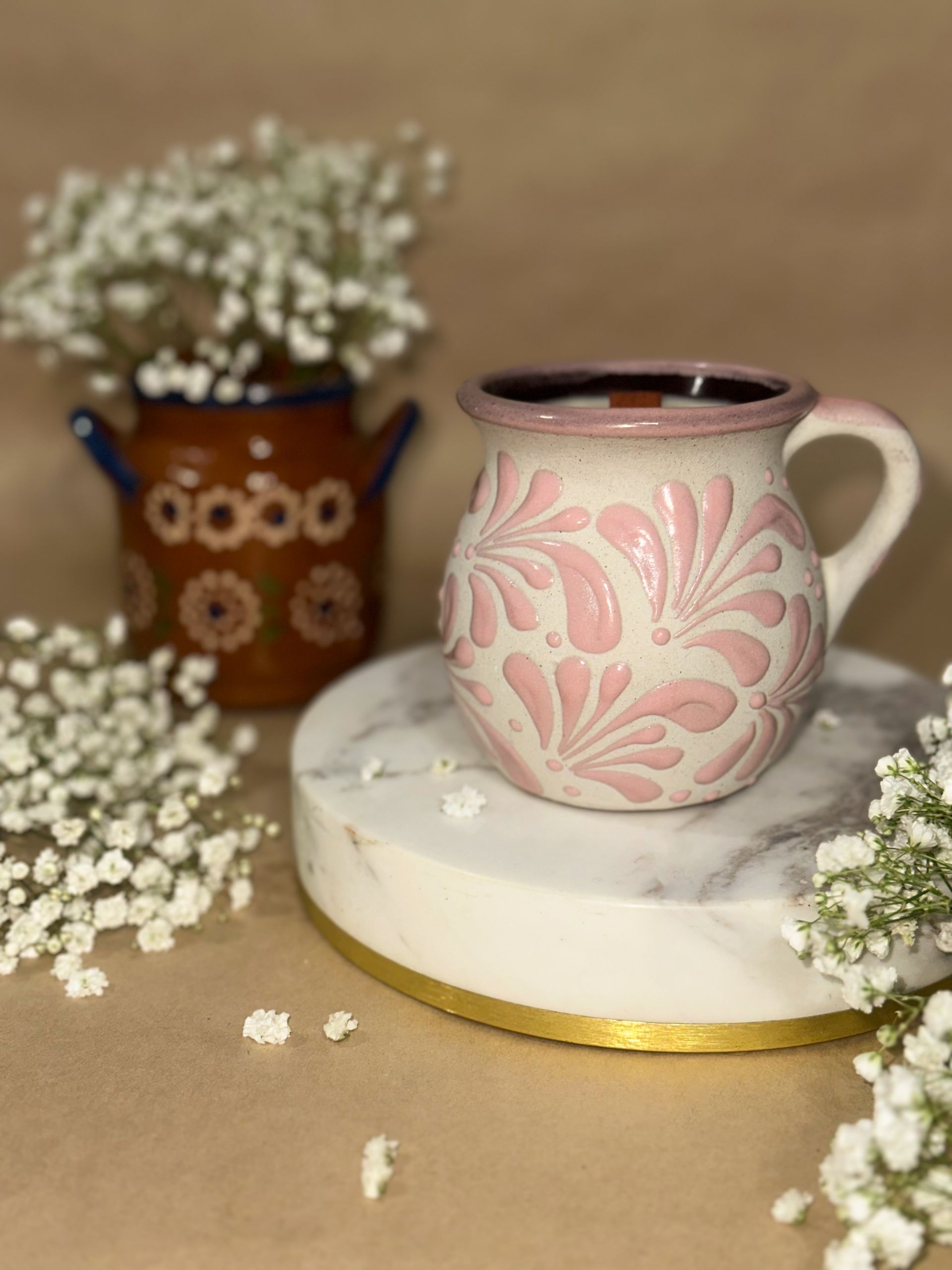 Indulge your senses with the rich aroma of Vaquero in our soy candle, hand-poured in San Antonio, Texas. Housed in a beautiful white and orange jarrito handcrafted by skilled Mexican artisans, this candle combines authentic craftsmanship with the comforting scent of Vaquero. Perfect for creating a warm and inviting ambiance in any space.